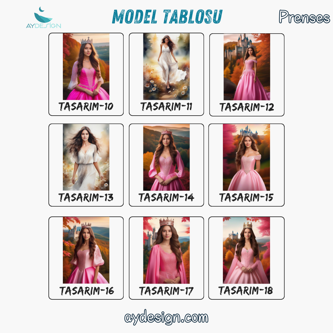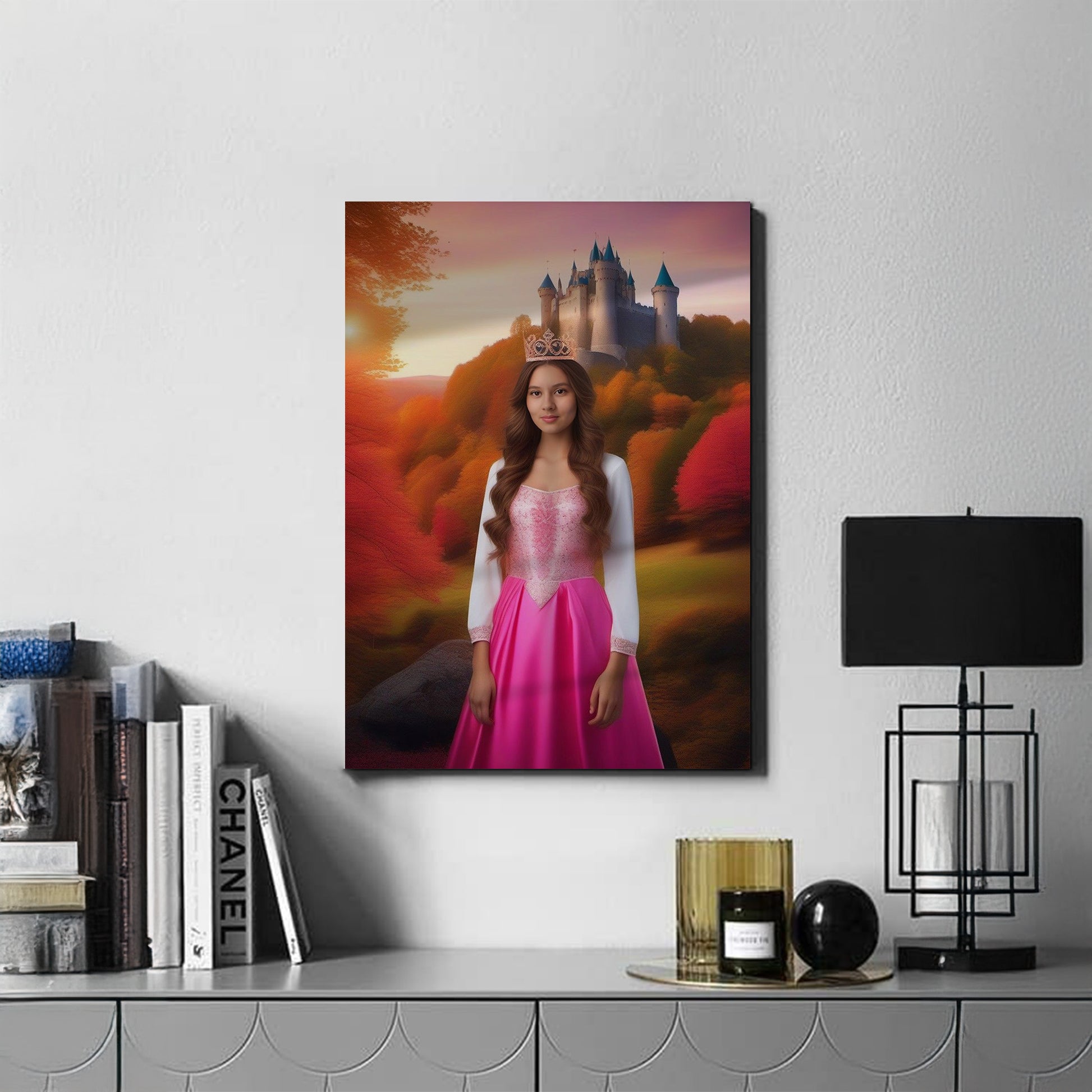 Kişiye Özel Prenses Temalı Karikatür Cam Tablo | Zarif ve Masalsı Dekor