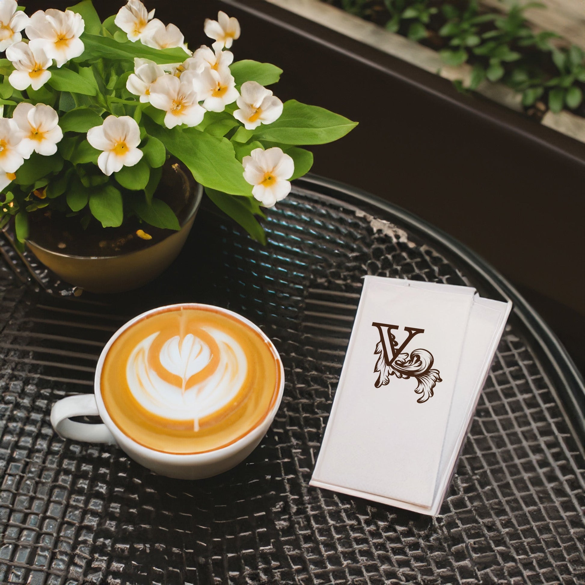 V Monogram Harfi Baskılı Şık Peçete – 33x33 cm, Çift Katlı, 20’li Paket | Özel Tasarım Masa Peçetesi