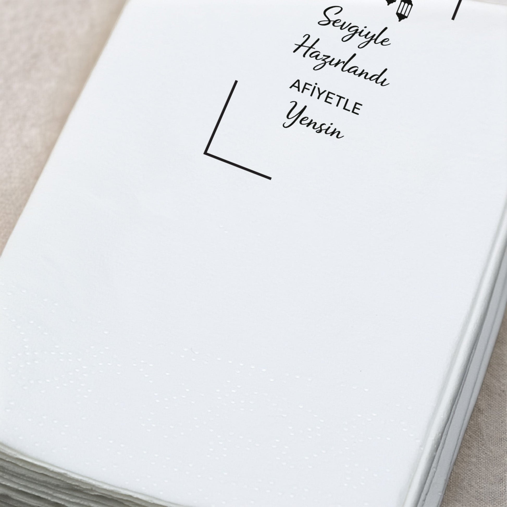 Ramazan sofralarınıza zarif ve anlamlı bir dokunuş katmak için özel olarak tasarlanan Ramazan Desenli Baskılı Peçete, sade şıklığı ve manevi atmosferi bir araya getirir.