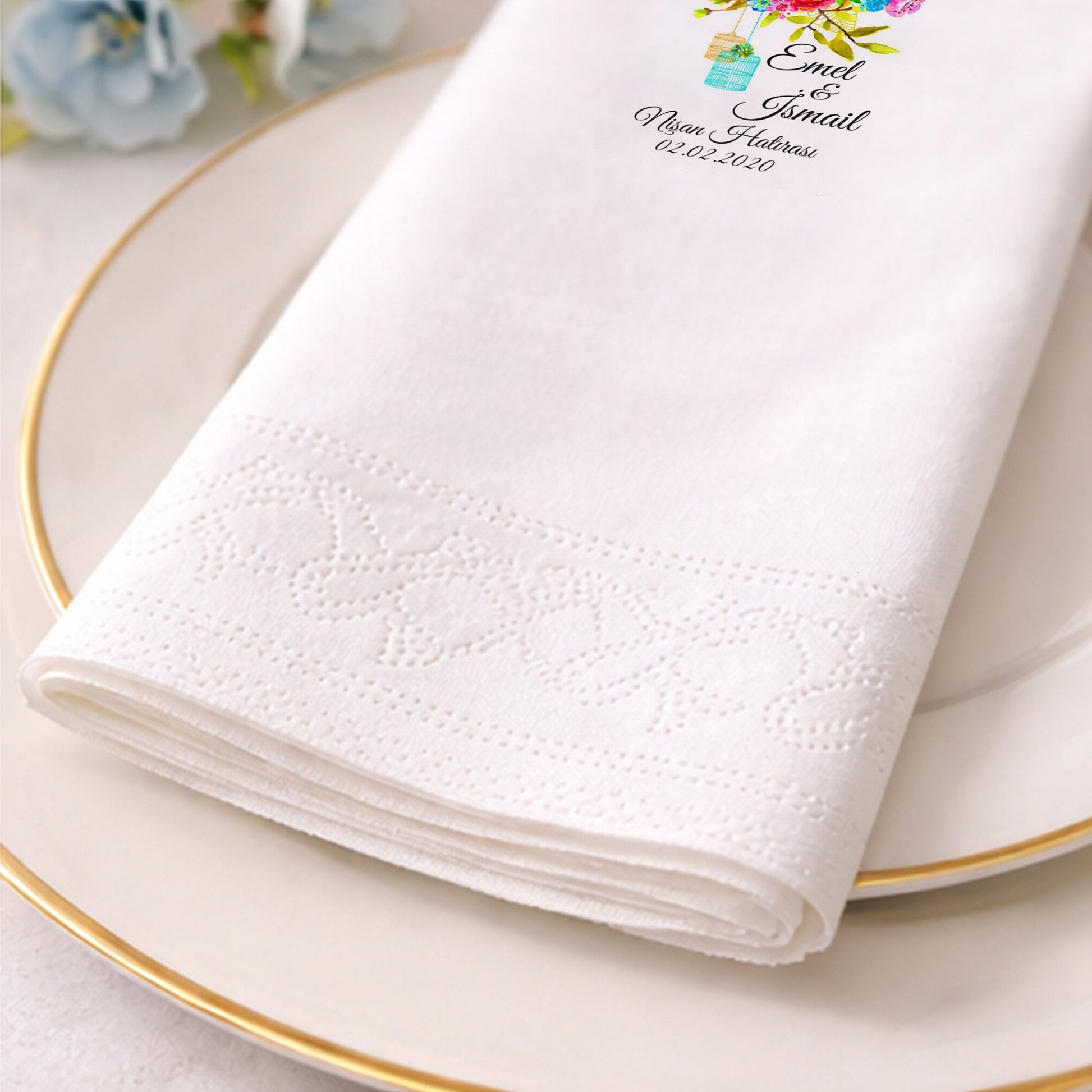 Renkli Çiçekli İsimli Nişan Hatırası Baskılı Peçete