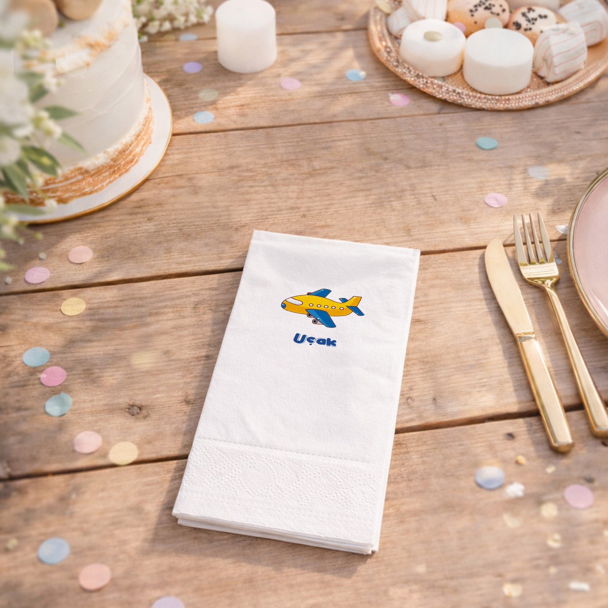 Gökyüzü temalı bir doğum günü partisi hayal eden minikler için tasarlanan bu özel gün peçetesi, masalarınıza neşe katıyor. Parlak sarı gövdesi ve canlı mavi kanatlarıyla dikkat çeken sevimli uçak illüstrasyonu, çocukların hayal dünyasını süsleyen bir detay sunuyor. Ürün, yüksek kaliteli kağıt dokusuyla hem yumuşak bir kullanım sağlar hem de dökülmelere karşı dayanıklıdır. "Uçak" yazılı tasarımıyla eğitici bir görsel sunarken, baby shower ve ilk yaş günü kutlamaları için ideal bir aksesuardır. Standart peçete boyutlarında üretilen bu dekoratif ürün, sofra düzeninde modern ve eğlenceli bir görünüm yakalamanızı sağlar. Temalı partilerinizde diğer uçak figürlü tabak ve bardaklarla mükemmel bir uyum yakalar. Hijyenik paketlemesi sayesinde güvenle kullanıma sunulur. Küçük pilotların kutlamalarında unutulmaz bir sofra şıklığı yaratmak için bu peçeteleri hemen sepetinize ekleyebilirsiniz.