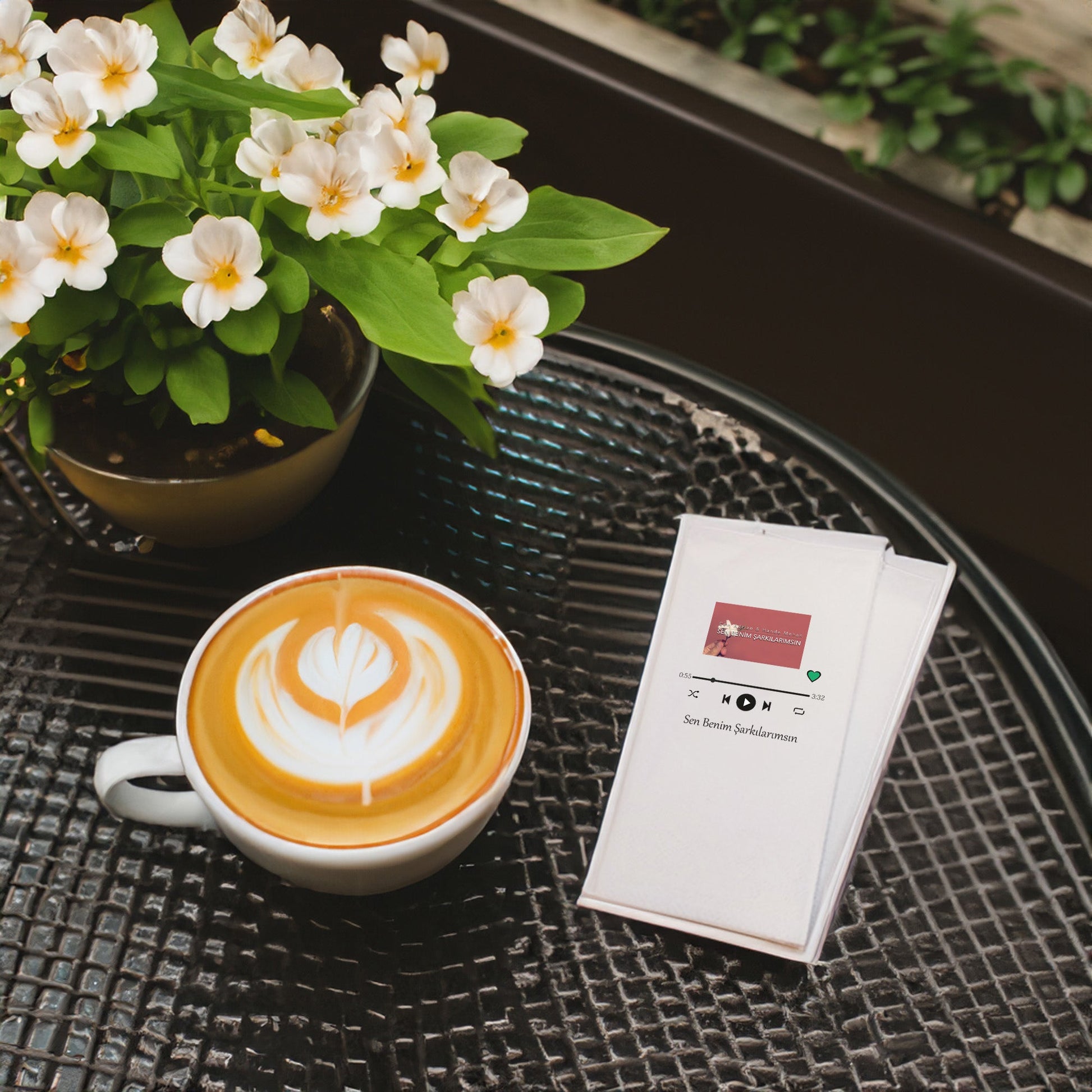 Kidzia’nın “Sen Benim Şarkılarımsın” tasarımlı baskılı peçetesi; şarkı teması, müzik ekranı görseli ve modern tipografisiyle hem özel gün sofralarına hem de günlük sunumlara estetik bir hava katar.