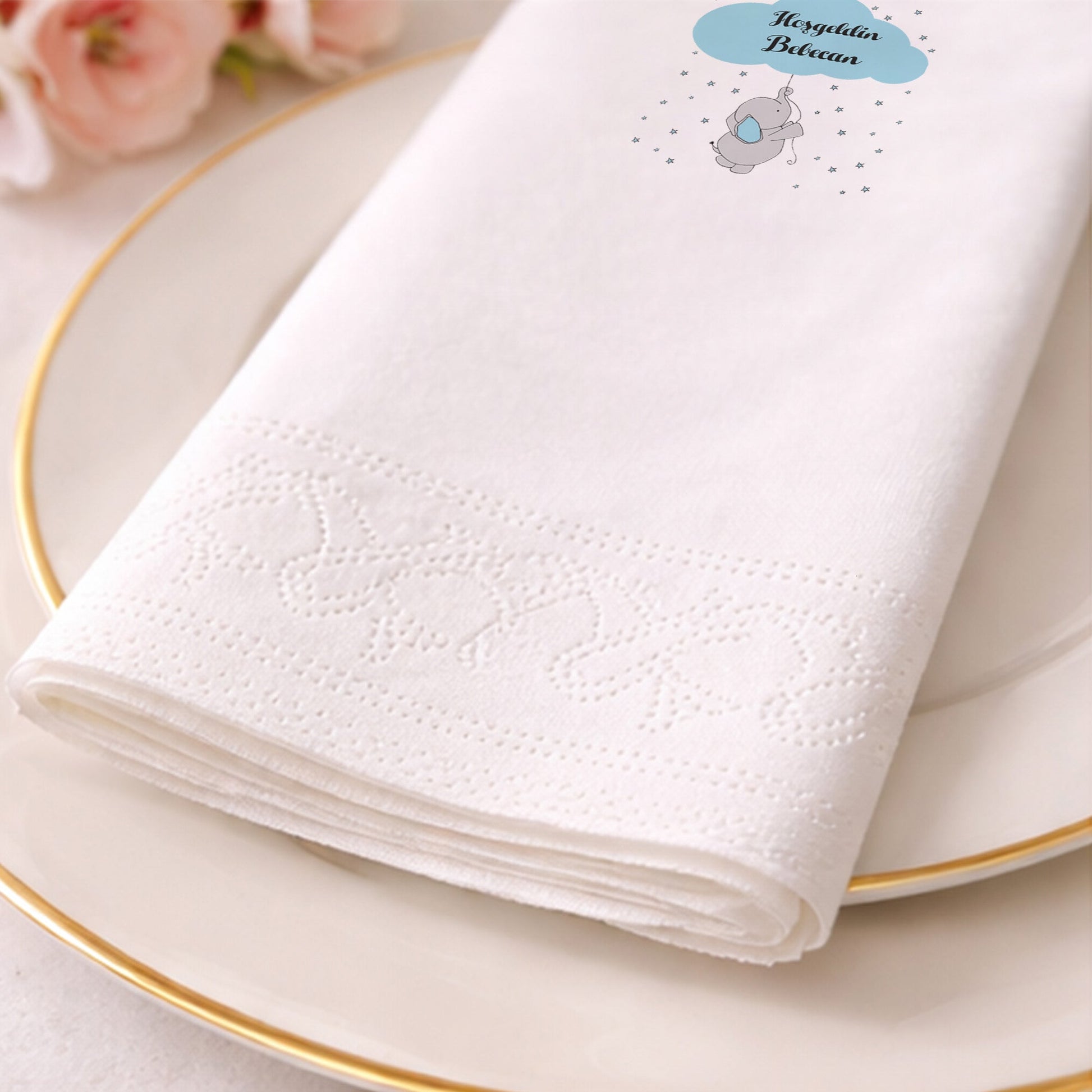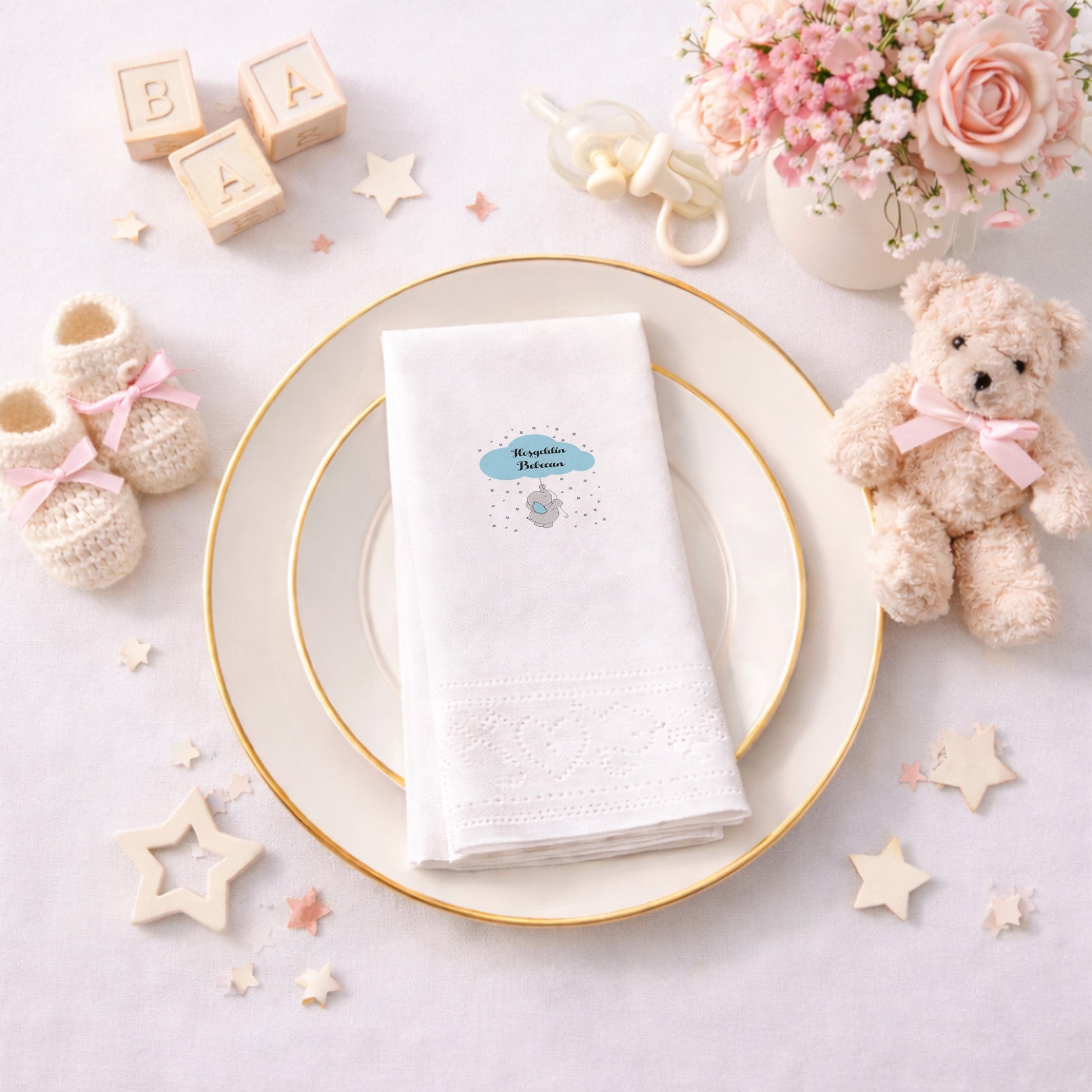 Sevimli Fil ve Yıldız Temalı Hoşgeldin Bebecan Peçetesi
