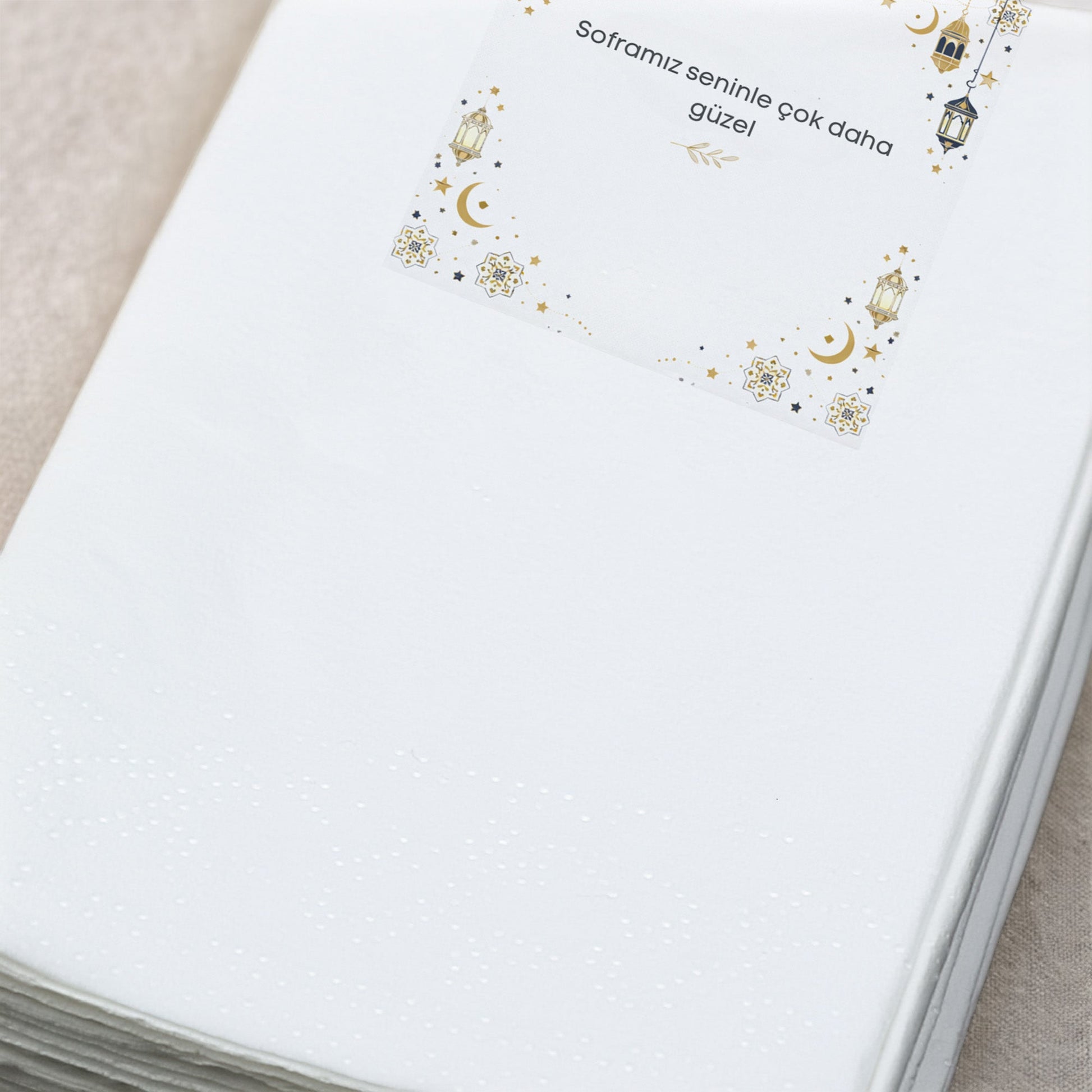 Ramazan Desenli Baskılı Peçete, zarif altın tonlu ikonlar ve