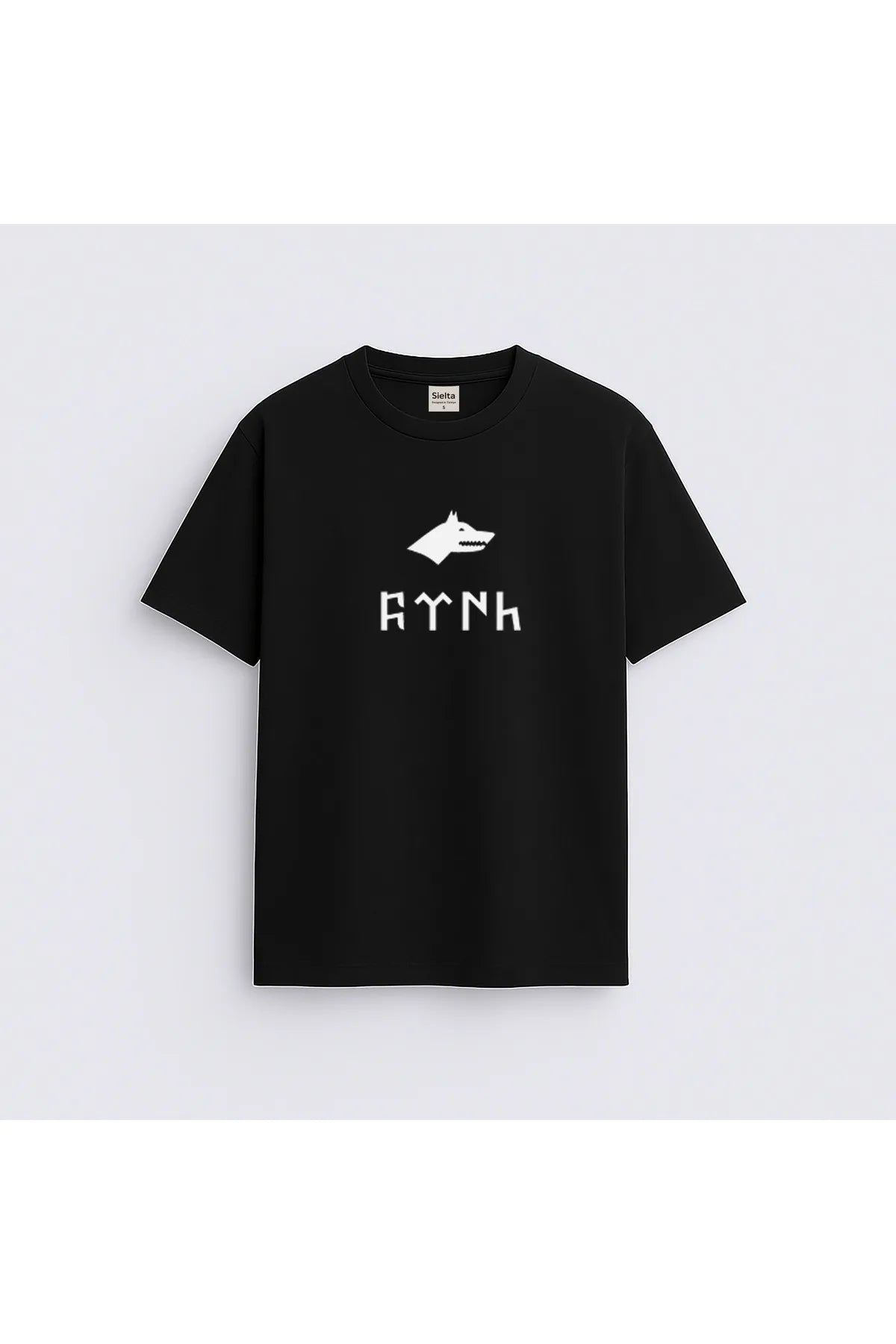 Türk Bozkurt Baskılı Bisiklet Yaka Siyah Tişört