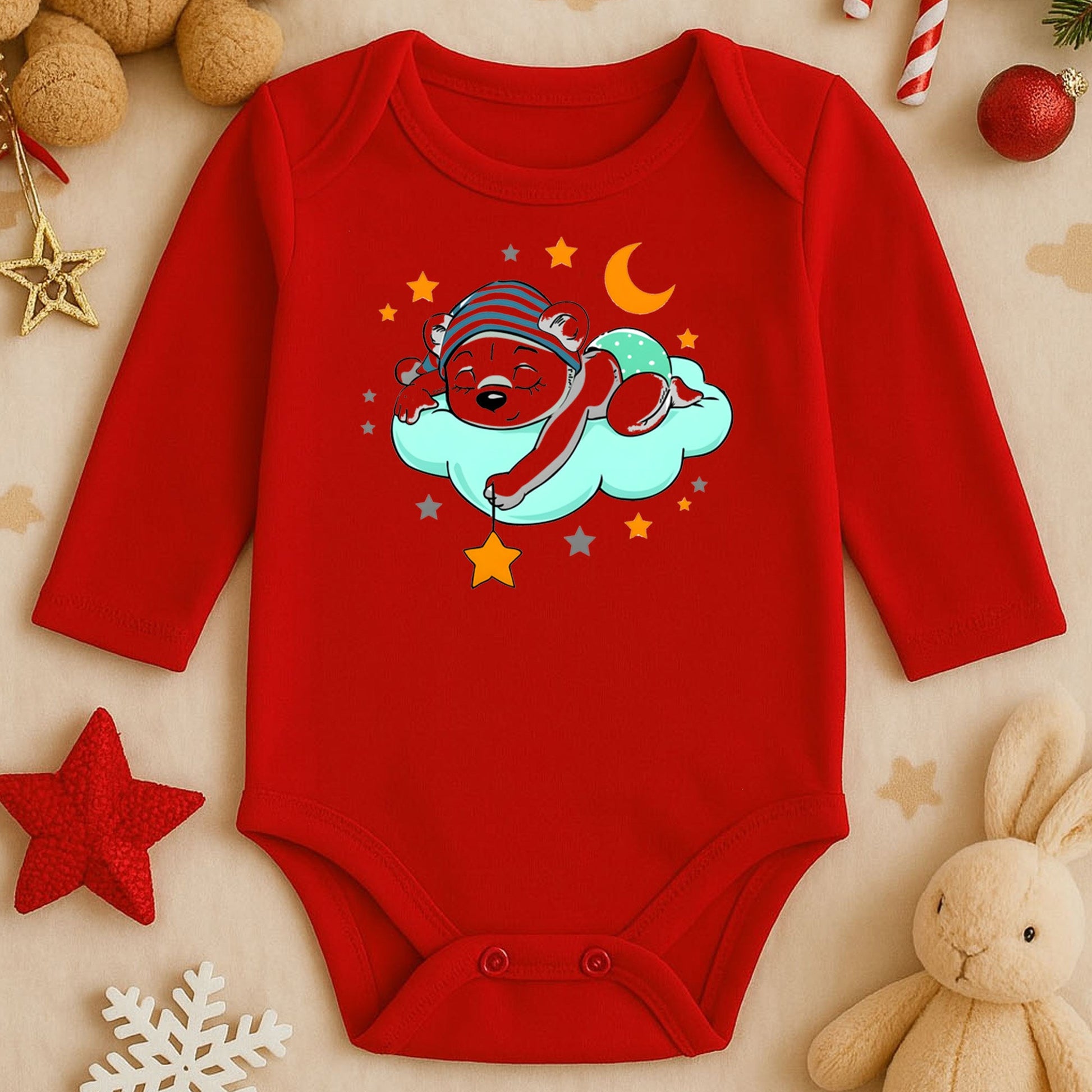 Uyuyan Ayıcık Bulut & Yıldız Baskılı Bebek Zıbını | Unisex | 1–36 Ay | Gece Temalı
