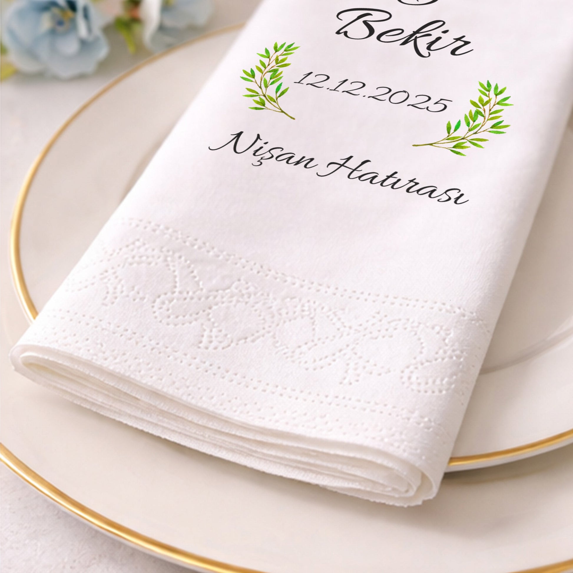 Yaprak Detaylı Minimal İsimli Nişan ve Söz Baskılı Peçete