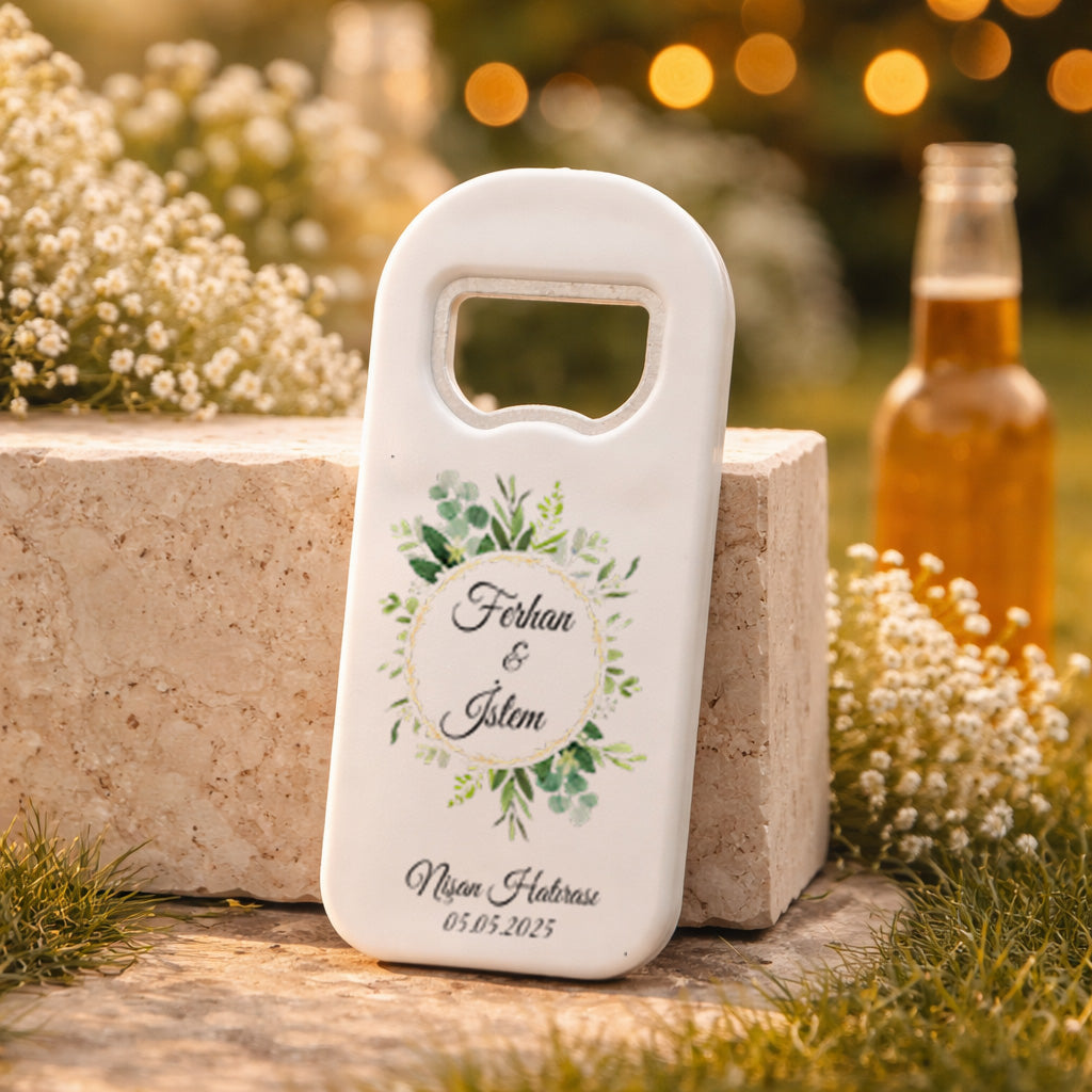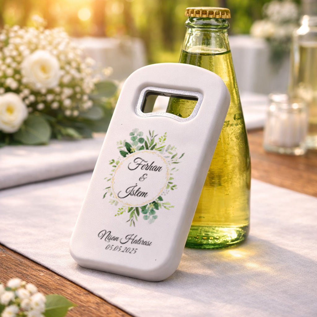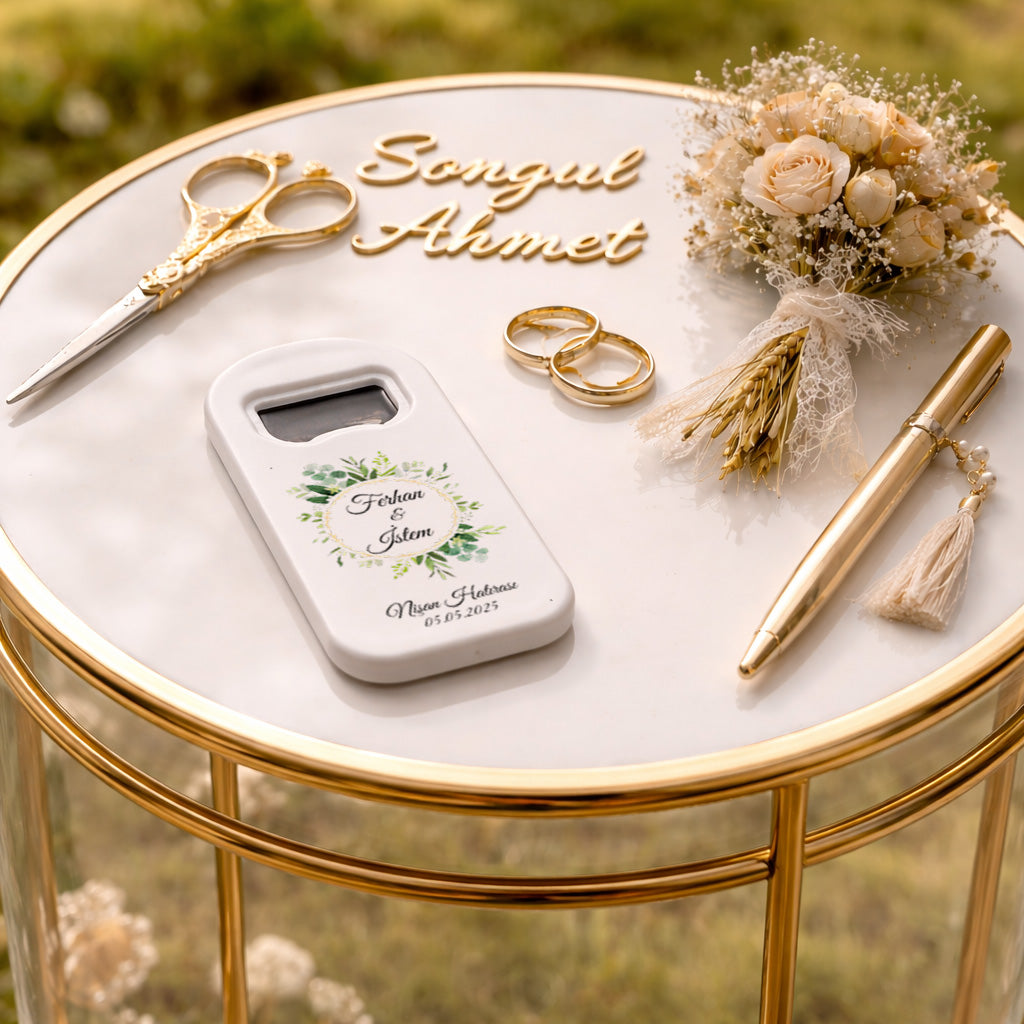 Düğün, nişan, söz, kına gecesi ve tüm özel davetlerde misafirlerinize sunabileceğiniz bu magnet açacak, klasik hatıraların ötesine geçerek hem dekoratif hem de kullanışlı bir alternatif oluşturur. Zarif tasarımıyla davet masalarınıza uyum sağlar ve organizasyonunuza bütünlük katar. Misafirlerinizin her kullanımda sizi hatırlayacağı bu özel ürün, anlamlı ve kalıcı bir hediye arayanlar için ideal bir tercihtir.